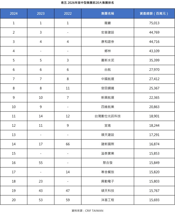 據CRIF「2026年版台灣中型集團企業研究」調查顯示,由股王信驊、股后穎崴所領軍的台灣中型集團資產總額來到2兆8,925億元、營收總額達1兆8,042億元、連同稅後淨利及投資家數全數寫下歷史新高;同時營收成長率、資產績效較大型集團表現更加強勁亮眼。檢視投資家總數持續攀峰的細節,東協營收爆發成長近六成、菲律賓三年獲利狂賺八倍,「東進美加墨」營收總額十年複合成長高達9.61%之外,隨全球「算力溢價」刺激台灣總經、人均GDP持續上行,帶動AI供應鏈、餐旅運輸服務業交出佳績,突顯「活力中型」面向地緣衝突及產業新興爆發,憑藉靈活資產調度與長線布局,成功將這波「趨勢紅利」轉化為「實質獲利」,正迅速貢獻國際供應鏈,成為全球布局下的耀眼新銳。